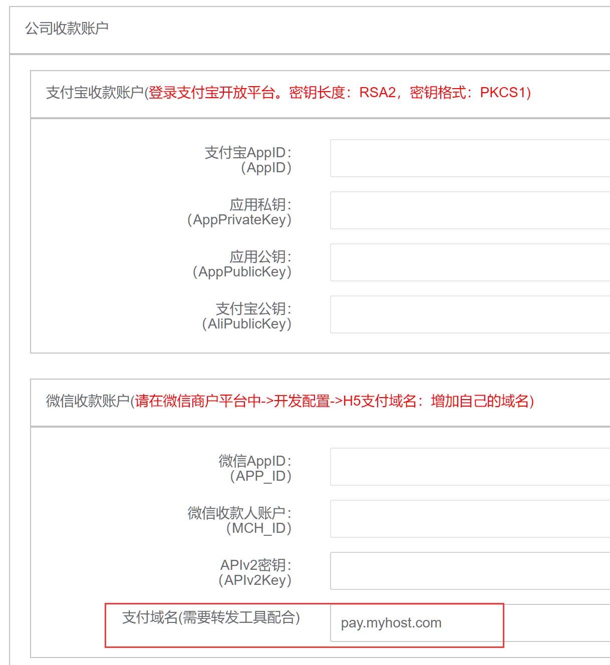 由于微信需要设置H5支付域名,而由我们系统实现支付后的处理,需要添加我们的域名,但是微信对第三方的域名增加非常困难,所以我们提供了转发工具解决这一问题。转发工具设置教程