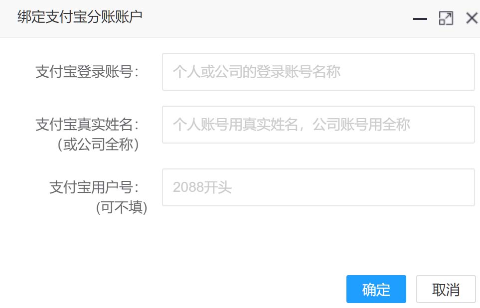 - 需要分别绑定支付宝分账账户和微信分账账户。